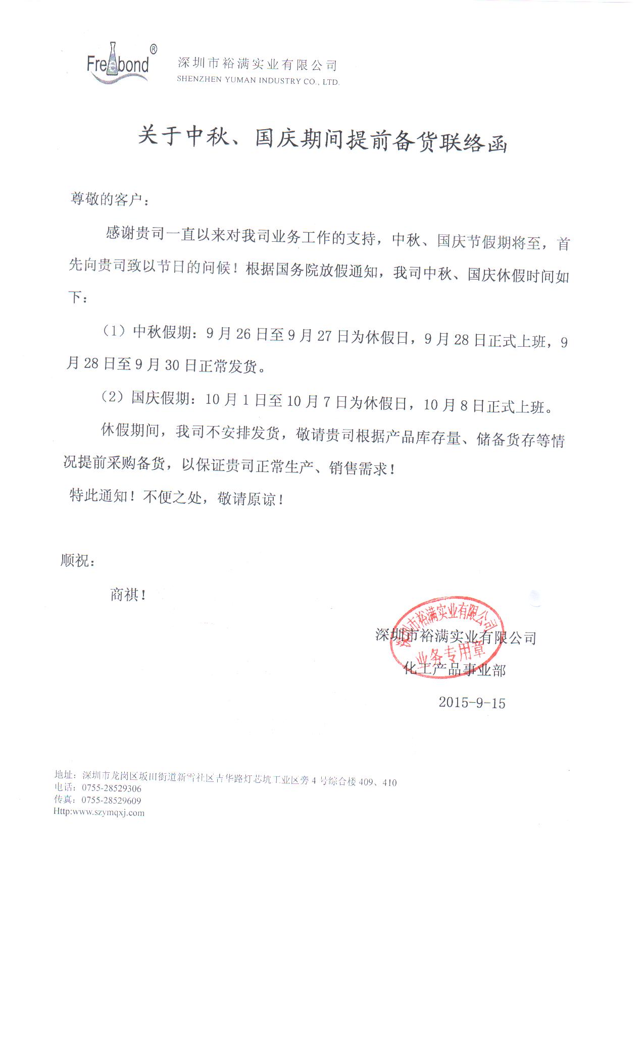 關(guān)于中秋、國慶期間提前備貨聯(lián)絡(luò)函