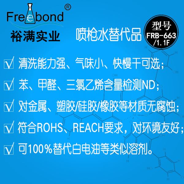 噴槍水替代品|環(huán)保噴槍水|替代噴槍水清洗劑FRB-663/FRB-1.1F裕滿實(shí)業(yè)專業(yè)研發(fā)的一種用于替代噴槍水等相似溶劑的環(huán)保清洗劑。