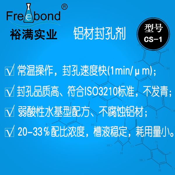 常溫弱酸性鋁材封孔劑|常溫弱酸性鋁合金封孔劑|裕滿清洗劑CS-1是用于鋁材表面封孔處理的溶劑;本品能在鋁材表面生成一層保護膜,封閉鋁表面的細孔,從而有效的提高鋁材的防腐能力,適用于鋁及鋁合金陽極氧化后的封孔處理。